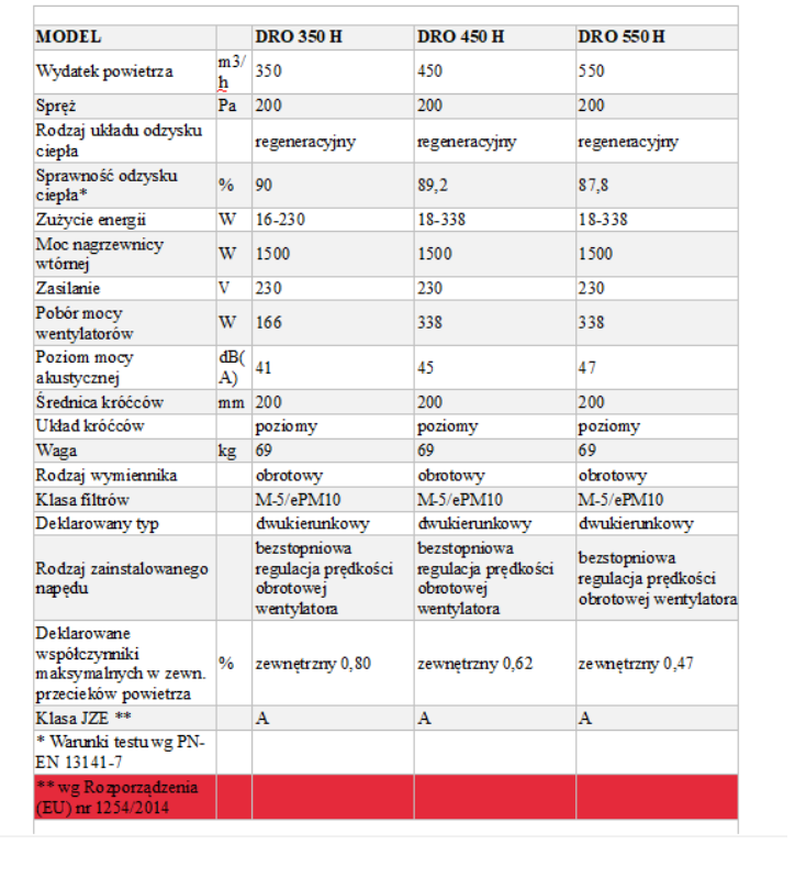 Modele 350 H, 450 H i 550 H różnią się wydajnością, co pozwala dobrać odpowiedni rekuperator do wielkości budynku.