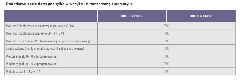 • Wersja V+ – więcej możliwości: W porównaniu do wersji bazowej V, wersja V+ oferuje rozbudowaną płytkę sterowniczą i więcej opcji podłączenia — co zwiększa możliwości integracji z dodatkowymi elementami (np. czujniki, okap kuchenny, GWC, nagrzewnica wtórna) i daje większą elastyczność instalacji.