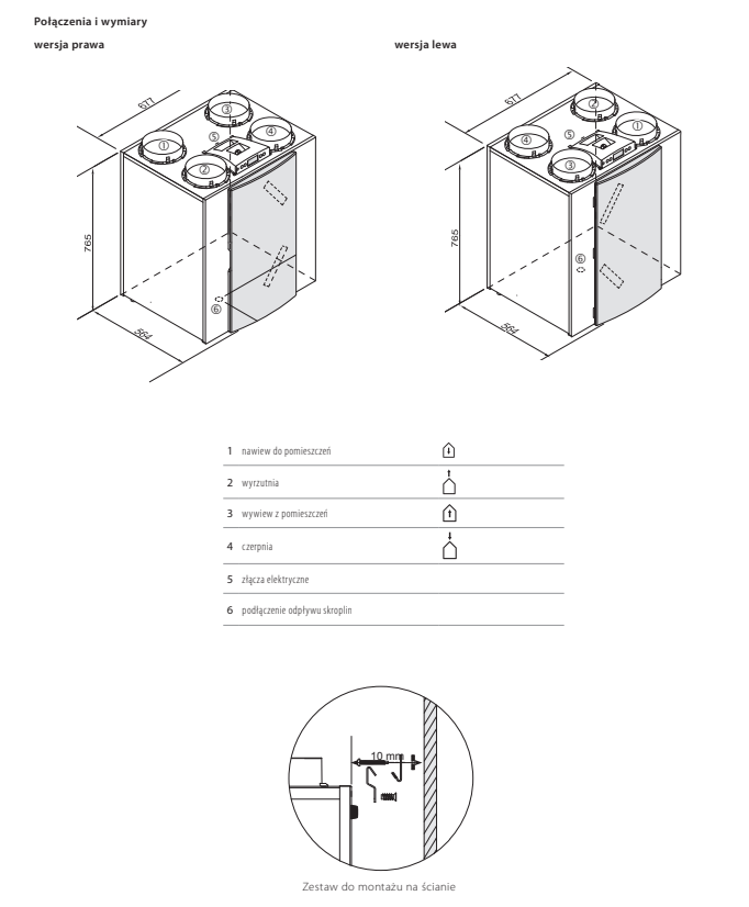 • Wymiennik: przeciwprądowy – zapewniający efektywny odzysk energii z powietrza wywiewanego.