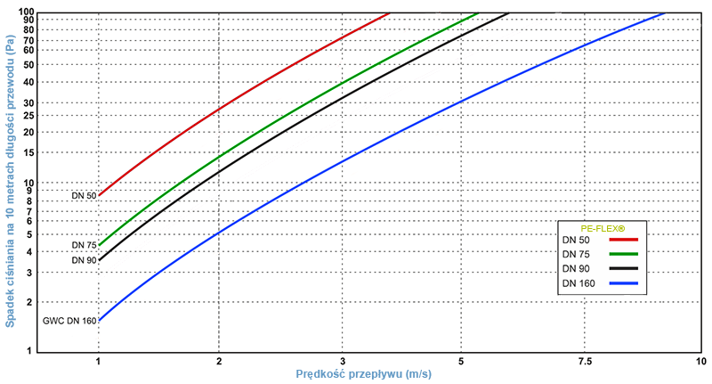 Gładka powierzchnia wewnętrzna gwarantuje wysokie przepływy powietrza przy niskich stratach ciśnienia, co przekłada się na energooszczędną pracę całego systemu. Przewód jest w pełni bezpieczny dla użytkowników – materiały spełniają wymagania dla kontaktu z żywnością.