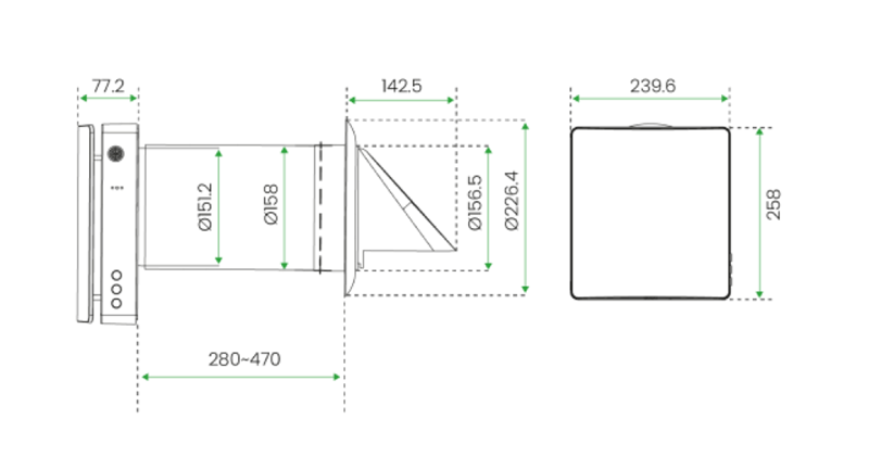 ✅ Montaż bez kanałów — prosta instalacja przez ścianę zewnętrzną, brak skomplikowanych prac budowlanych.