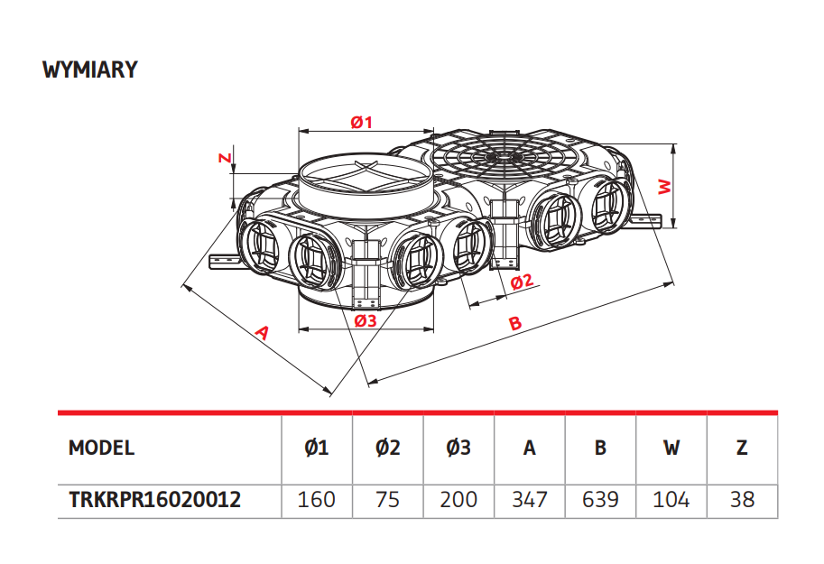 Skrzynka rozdzielcza TRINNITY jest przeznaczona do rozprowadzenia strumienia powietrza pomiędzy dwoma kondygnacjami.
