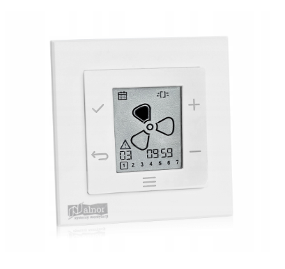 Podtynkowy sterownik z wyświetlaczem LCD do rekuperatorów serii PremAIR i SlimAIR umożliwia zaprogramowanie pracy zgodnie z kalendarzem, odczyt parametrów pracy takich jak temperatur, prędkości wentylatorów lub stanu by-passu. Dodatkowo umożliwia zmianę prędkości biegów wentylatorów zgodnie z preferencjami użytkownika. Urządzenie pozwala na ustawienie jednego z 5 trybów pracy: