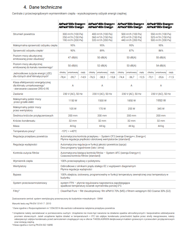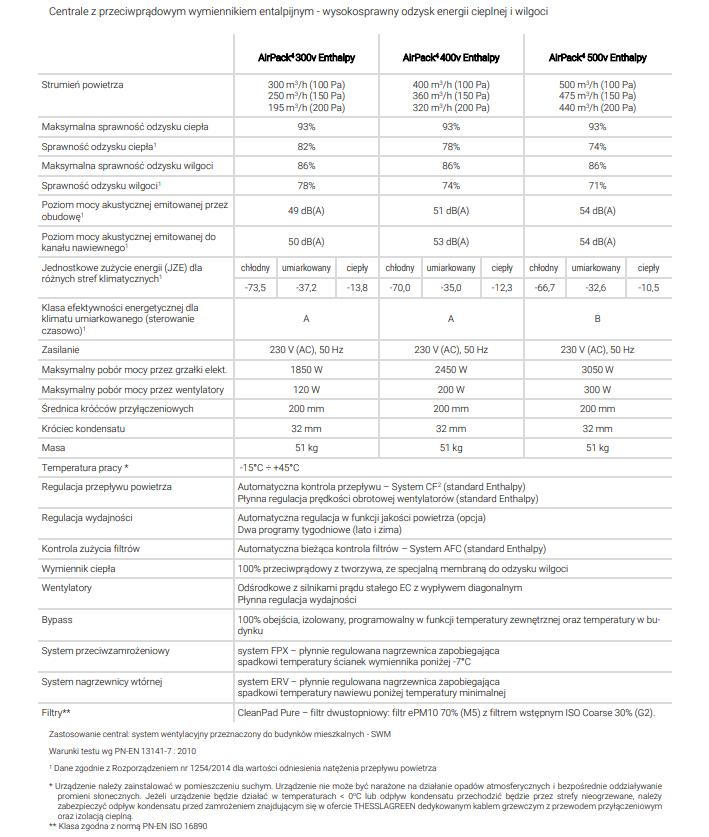 Wymiennik ciepła: przeciwprądowy; w wersji Enthalpy również entalpiczny.